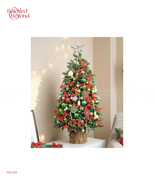 Được làm từ cành thông tươi Đan Mạch chất lượng cao, cây thông này được thợ cắm tỉ mỉ vào foam xốp có nước, giúp giữ độ tươi lâu dài. Với sự kết hợp tinh tế giữa cành thông xanh mướt và các phụ kiện trang trí như bóng đèn, quả châu, ruy băng, cây thông mang đến vẻ đẹp hoàn hảo như một cây thông tươi thật.