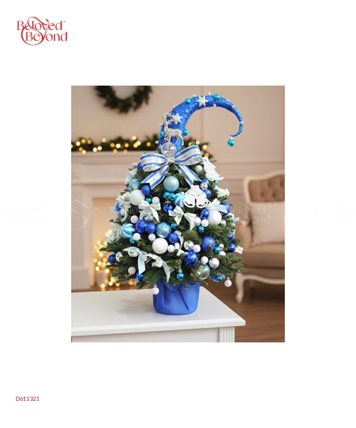 Được làm từ cành thông tươi Nordmann Fir chất lượng cao, cây thông này được thợ cắm tỉ mỉ vào foam xốp có nước, giúp giữ độ tươi lâu dài. Với sự kết hợp tinh tế giữa cành thông xanh mướt và các phụ kiện trang trí như bóng đèn, quả châu, ruy băng, cây thông mang đến vẻ đẹp hoàn hảo như một cây thông tươi thật.