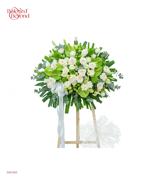 Cuộc gặp gỡ nào cũng phải tới lúc chia tay, bàn tiệc nào cũng tới lúc tàn và đời người ai rồi cũng sẽ đi đến hồi kết. Kệ hoa chia buồn “Niềm thương tiếc” chia sẻ thông điệp về cái kết của đời người, cầu nguyện cho người đã khuất sẽ tìm được an yên, tĩnh tâm ở một thế giới khác. Đồng thời mong người ở lại cũng đừng quá đau lòng, tiếp tục hướng về tương lai phía trước. Bởi trong cuộc đời này, khi đã chấp nhận một sự khởi đầu, cũng đồng nghĩa với việc phải chờ đợi một kết thúc.